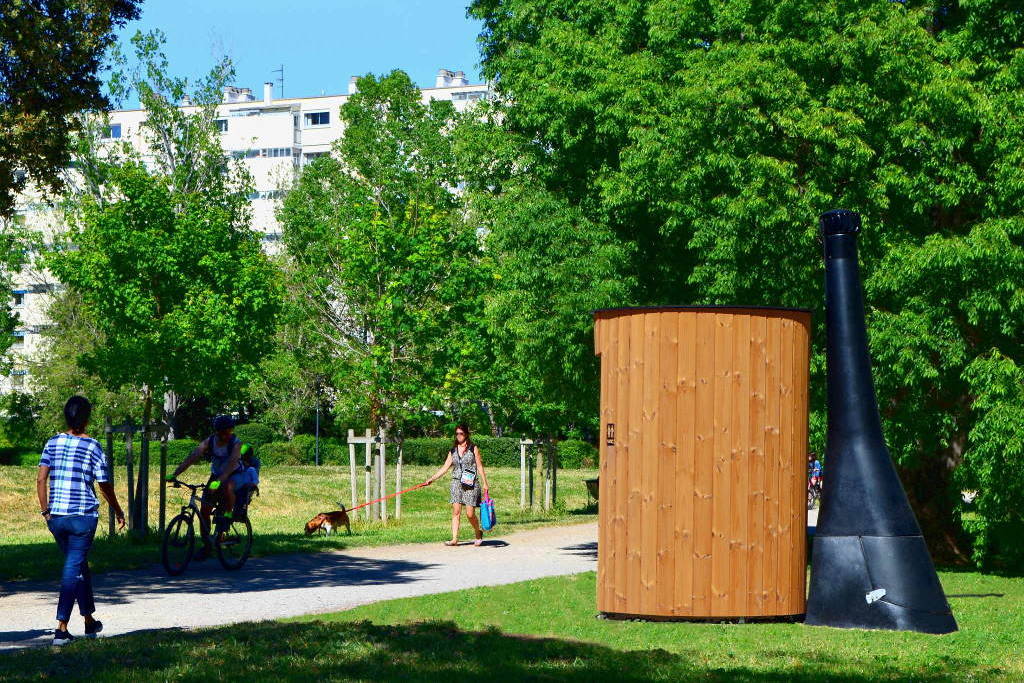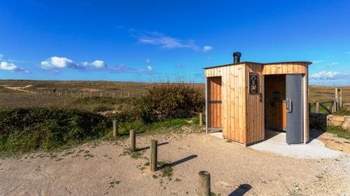 Funciona mediante evaporación y secado, sin necesidad de conexión a la red de agua ni alcantarillado.